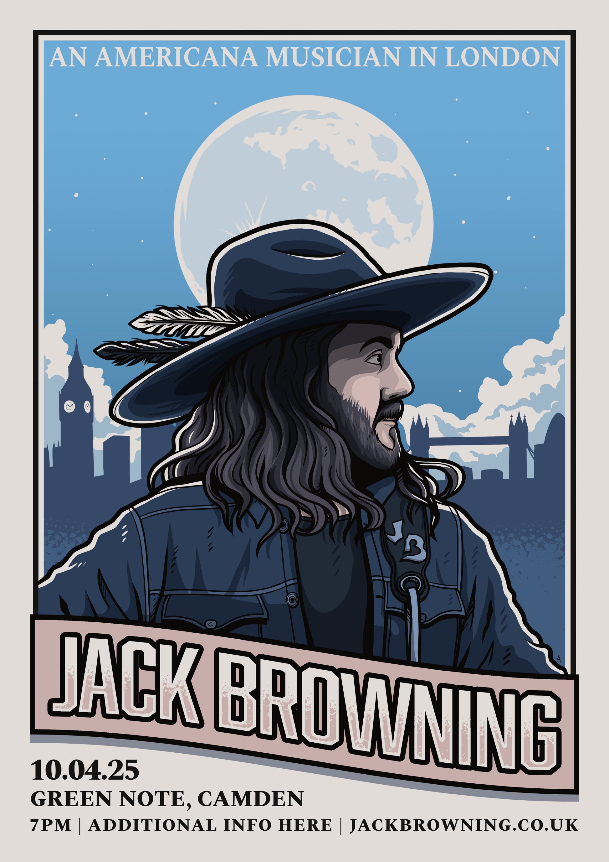 A signed poster (size A3 - 11.7x16.5") for Jack's headline show at London's Green Note in April 2025.
